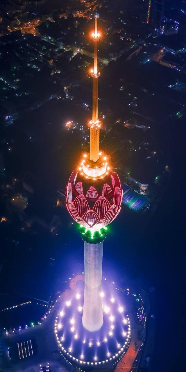 The Colombo Lotus Tower, locally known as Nelum Kuluna is a striking multi‑purpose landmark rising above the Beira Lake waterfront in central Colombo, Sri Lanka. Completed in September 2019 and opened to the public in September 2022, it reaches a height of 351.5 m (approximately 1,153 ft), making it the tallest self‑supported structure in South Asia and ranking among the 11th tallest towers in Asia and 19th in the world. Inspired by the lotus flower, a powerful symbol in Sri Lankan culture representing purity, resilience, and national growth, the tower’s architecture features a green tapering shaft that culminates in a petal‑shaped bud illuminated in dynamic shades of pink and yellow at night.