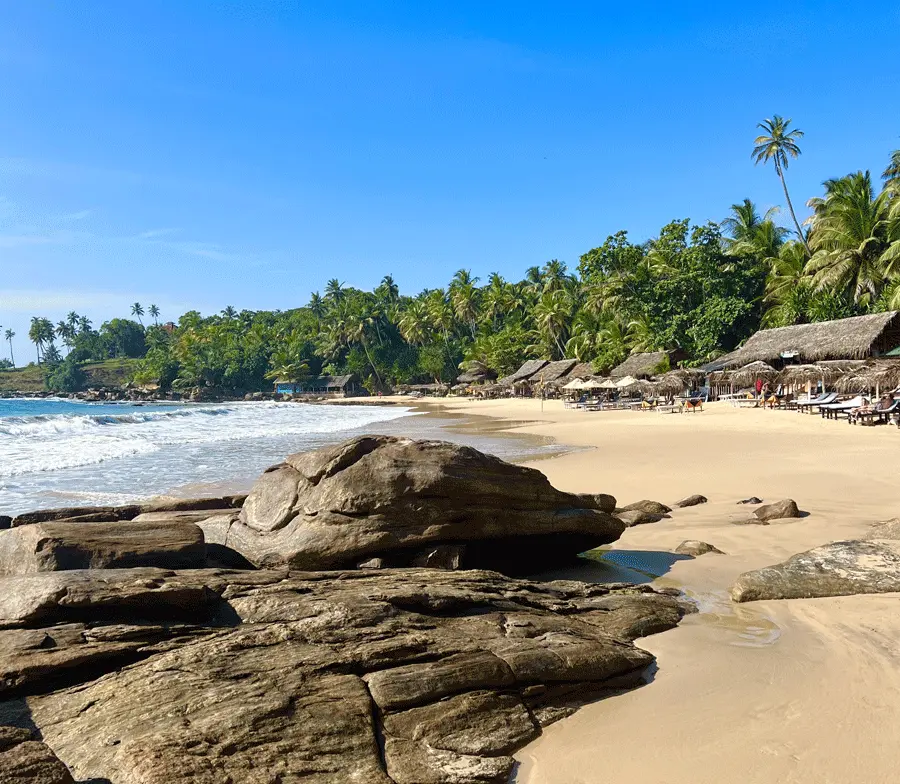 Beautiful, flat, sloping beach to the sea, which seems very clean and tidy. In/at the small restaurants on the beach, there is a very relaxed atmosphere. Swimming, resting in the shade of coconut trees, some sunburns, and work. This hidden place is to explore the beauty of sea turtles. You will find amazing accommodations with private suites and services for the perfect Sri Lankan getaway and enjoy native foods with fresh seafood here.
