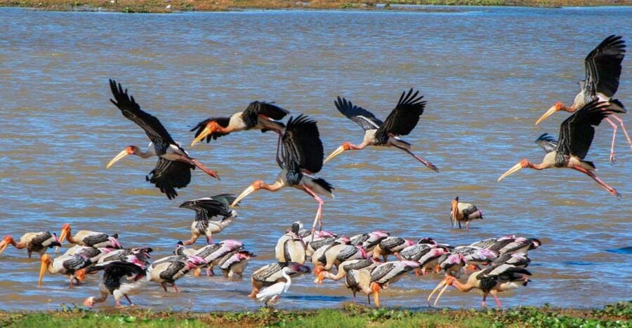 Kumana National Park, located on the southeastern coast of Sri Lanka, is a pristine wilderness renowned for its rich biodiversity and status as a premier bird sanctuary. Kumana is one of the most important bird nesting and breeding grounds Sri Lanka. 255 species of birds have been recorded in the national park. Bordering Yala National Park, Kumana spans over 35,000 hectares and features lagoons, mangroves, and dry zone forests that provide a haven for migratory and resident bird species, including the rare, black-necked stork and painted stork. From April to July, tens of thousands of birds migrate to the Kumana swamp area. Rare species such as black-necked stork, lesser adjutant, Eurasian spoonbill, and great thick-knee are breeding inhabitants. Waders belonging to families Scolopacidae and Charadriidae are among the visitors to the area along with waterfowl. Pintail snipes migrate here, flying 9,000 kilometers (5,600 mi) to 11,000 kilometers (6,800 mi) from Siberia. Tilapia and mullet are the commonly fished varieties in the area, while Channa spp. are also caught occasionally. Mugger crocodile, Indian flap-shelled turtle, and Indian black turtle are the common reptiles inhabiting the park.